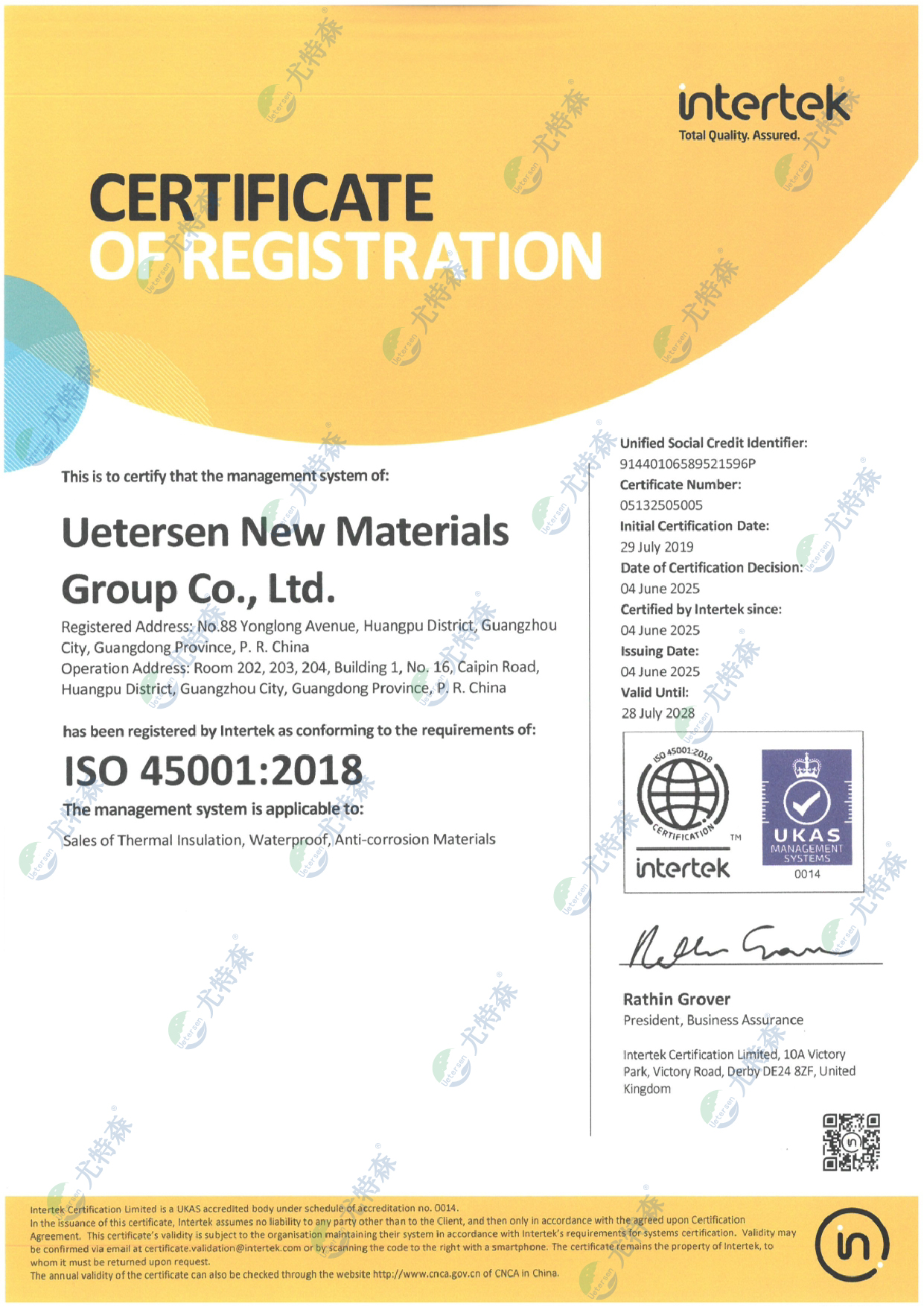 尤特森新材料集團有限公司是一家集保溫材料及復合材料的研發、生產和銷售為一體的綜合型企業,旗下擁有UETERSEN尤特森和UK尤科新材等多個品牌。